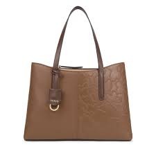 Bolso shopping grande TOUS de la colección TOUS Icon de piel bovina troquelada de osos combinada con piel en acabado liso en color marrón. Asas para llevar al hombro. Compartimento grande con cremallera. Medidas: 15 x 39 x 29 cm.