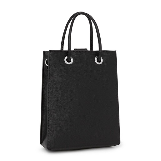 Shopping TOUS para mujer de la colección Pop fabricado en poliuretano efecto safiano en color Negro. Se trata de un original bolso con cierre de botón magnético que cuenta con asas de hombro. En su interior podemos encontrar un bolsillo plano, cuenta con un adorno en forma de osito TOUS colgante.