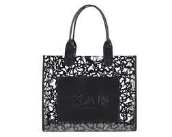 Bolso shopping grande TOUS de la colección Amaya Vinyl de vinilo transparente con estampado de osos y elementos de poliuretano efecto piel en negro. Cierre con botón magnético. Asas largas de hombro. Bolsillo exterior plano.