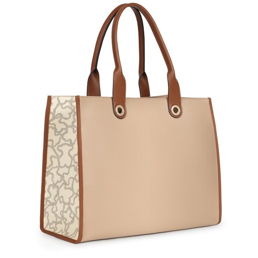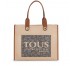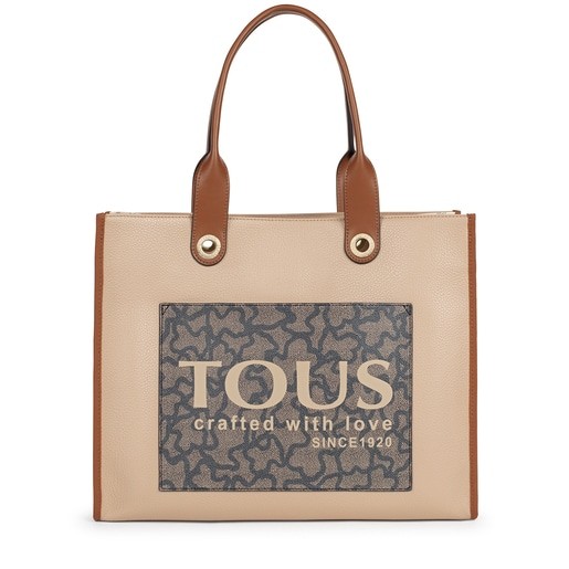 Bolso shopping grande TOUS de la colección Amaya Kaos Icon de vinilo efecto piel en color marrón y beige con estampado de osos. Cierre con botón magnético. Asas de hombro. Bolsillo exterior plano y dos bolsillos interiores con cremallera. Medidas: 40 x 33 x 20 cm.