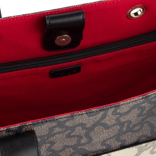 Bolso shopping grande TOUS de la colección Amaya Kaos Icon de vinilo efecto piel en color multi negro con estampado de osos. Cierre con botón magnético. Asas de hombro. Bolsillo exterior plano y dos bolsillos interiores con cremallera. Medidas: 40 x 33 x 20cm.
