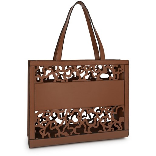 Bolso shopping grande TOUS Amaya Kaos Shock de vinilo efecto piel en color marrón. Asas largas de hombro. Lleva botónes a presión para poder incorporar bolsa Amaya Kaos Shock. Medidas: 15 x 39,5 x 32 cm. Nota: Bolsa interior está incluida.