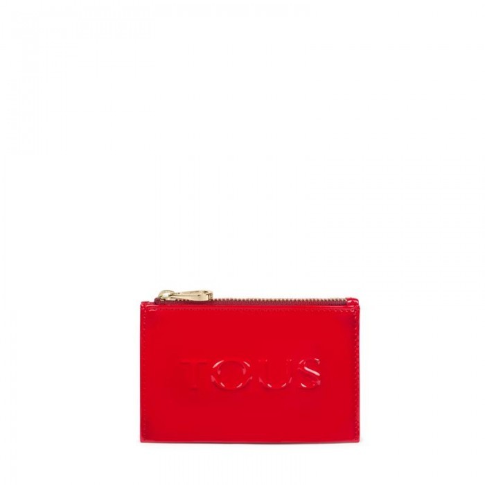 Monedero TOUS para mujer de la colección Dorp en color rojo. Se trata de un monedero fabricado en vinilo efecto charol que posee el logotipo TOUS en relieve. Consta de cierre de cremallera y en su exterior posee 3 compartimentos para tarjetas.