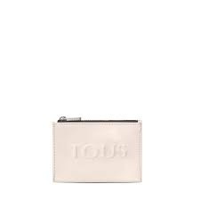Monedero tarjetero TOUS de la colección Dorp en vinilo de efecto charol con relieve TOUS en color blanco. Cierre con cremallera. Tres compartimentos exteriores para tarjetas. Medidas: 8 x 12 x 1 cm.