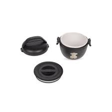 Fiambrera termo Baby TOUS está fabricada en acero inoxidable, de doble pared y con doble bol interior BPA free, es la solución perfecta y cómoda para transportar tu comida de alimentos sólidos y líquidos. La doble pared con cámara de vacío, aumenta el aislamiento térmico. El set de cubiertos está compuesto por cuchara, cuchillo y tenedor, fabricados en acero inoxidable de alta calidad, presentados en una práctica funda. Fácil de limpiar, ya que se puede lavar en el lavavajillas. No microondas. No congelador. Fabricado en acero inoxidable 304. . Acabado exterior con pintura en polvo de alta resistencia. Logotipo grabado con la´ser. Capacidad: 560 ml, Taman~o: 165 mm x 150 mm, Temperatura del contenido: 2 85 ºC., Material de la tapa: Polipropileno libre de BPA, Material del contenedor exterior: Acero inoxidable 304, Material del bol interior: Polipropileno libre de BPA, Color negro.
